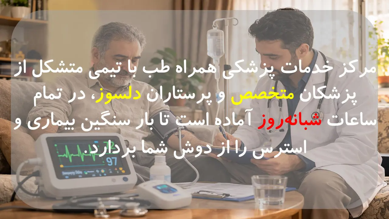 مرکز خدمات پزشکی همراه طب با تیمی متشکل از پزشکان متخصص و پرستاران دلسوز، در تمام ساعات شبانهروز آماده است تا بار سنگین بیماری و استرس را از دوش شما بردارد.